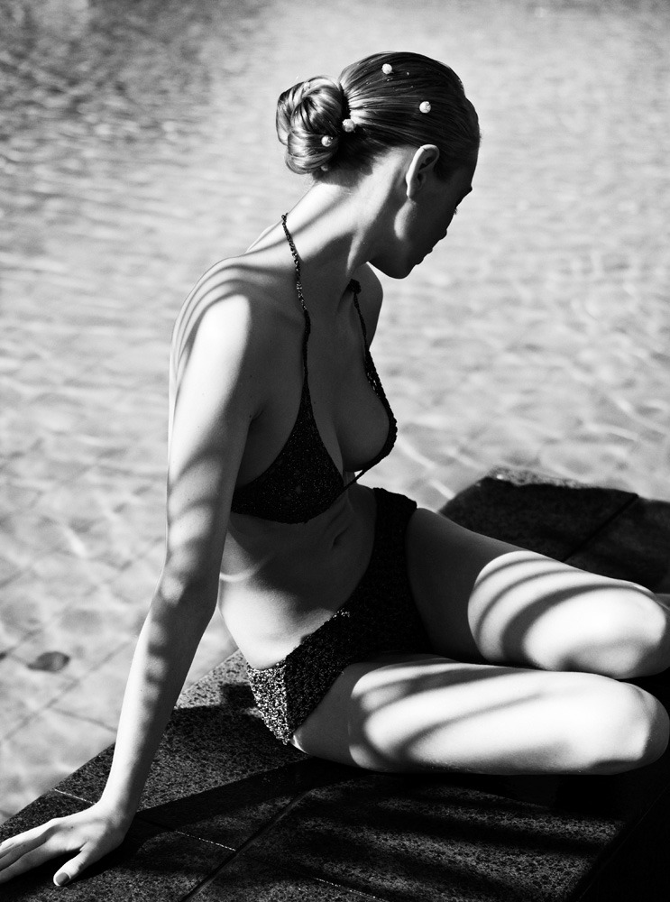 photography art fashion editorial model black and white poolside swimwear one piece swim suit bathing suit beauty sports illustrated victorias secret hair makeup beautiful