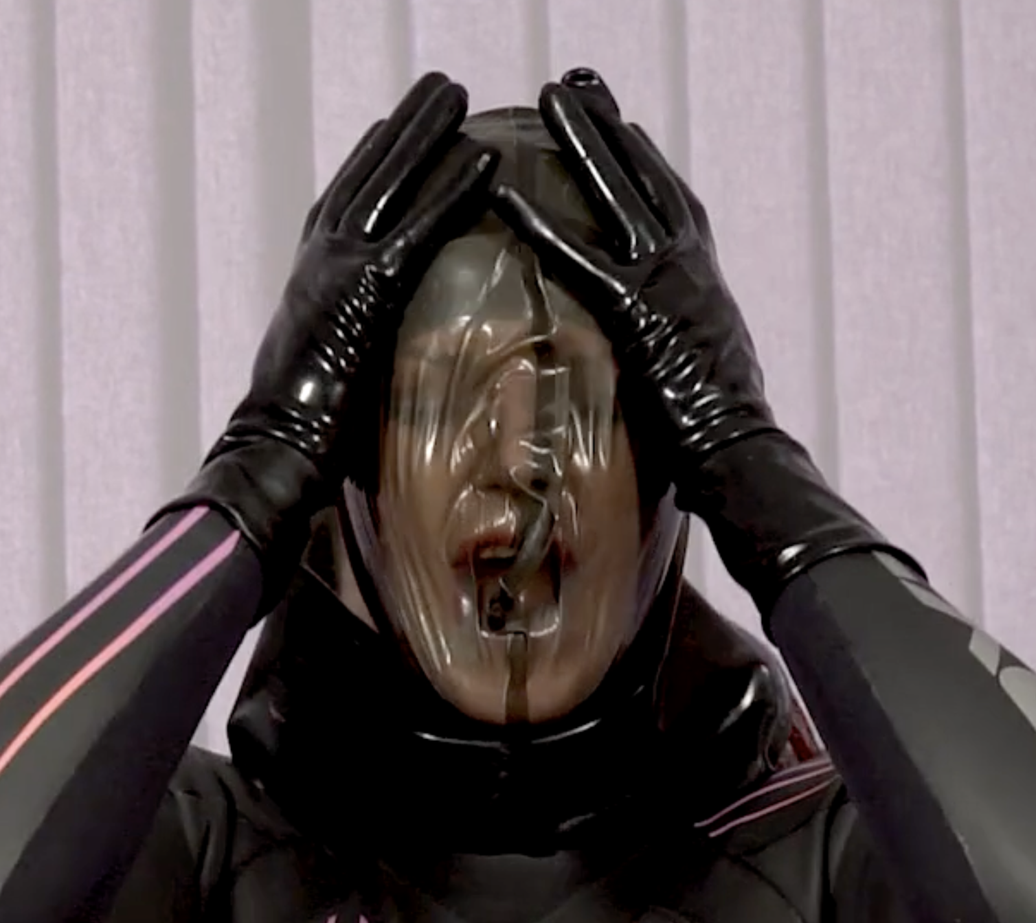 spandex leggings hogtied frogtied encased stuffed gag tape gag otm gag
