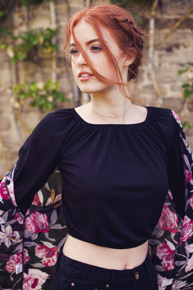 ms rosie bea redhead red hair girl cute floral flowers park fashion editorial portrait red lips ailera stone youtuber blogger aiste tiriute
