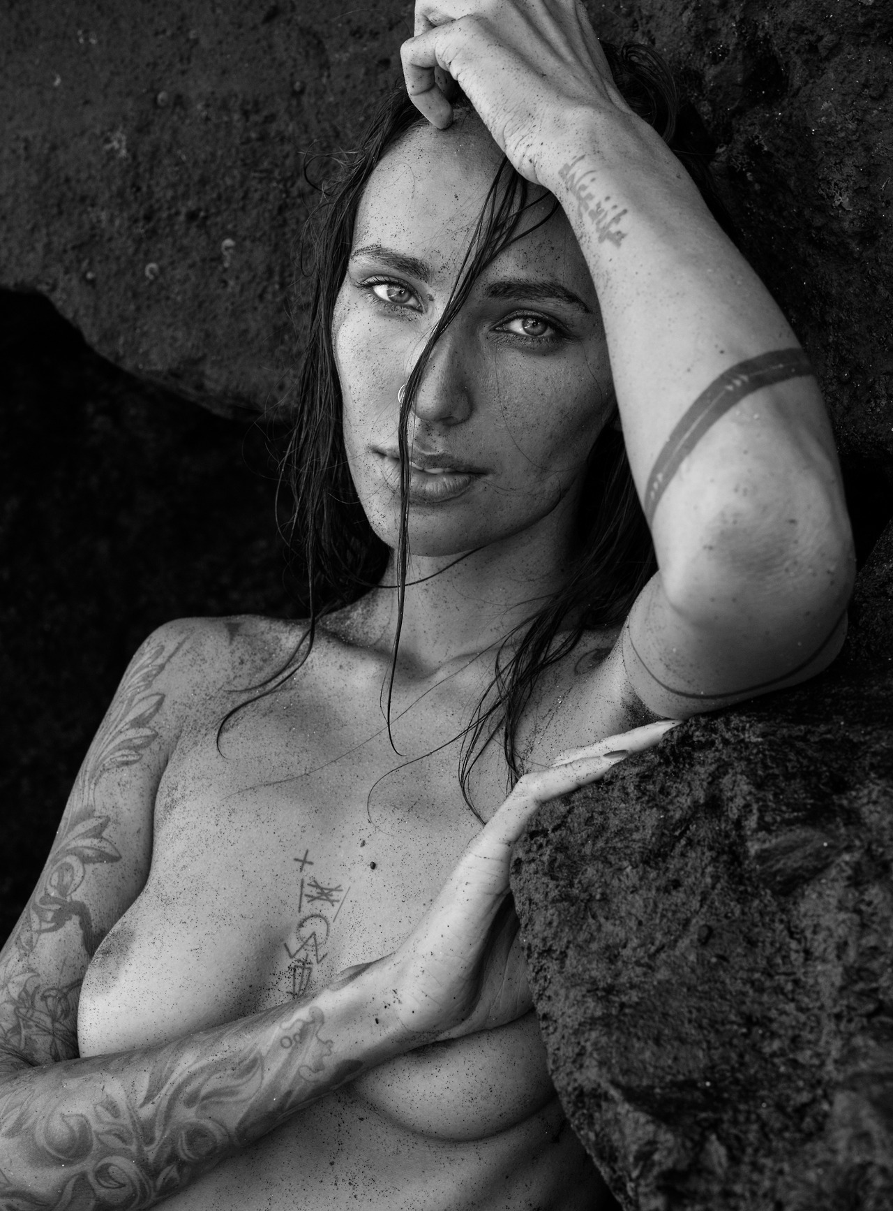 anne de paula black & white cleavage transparent see through