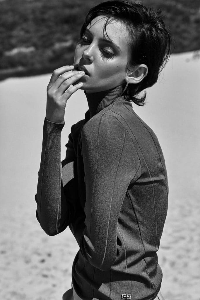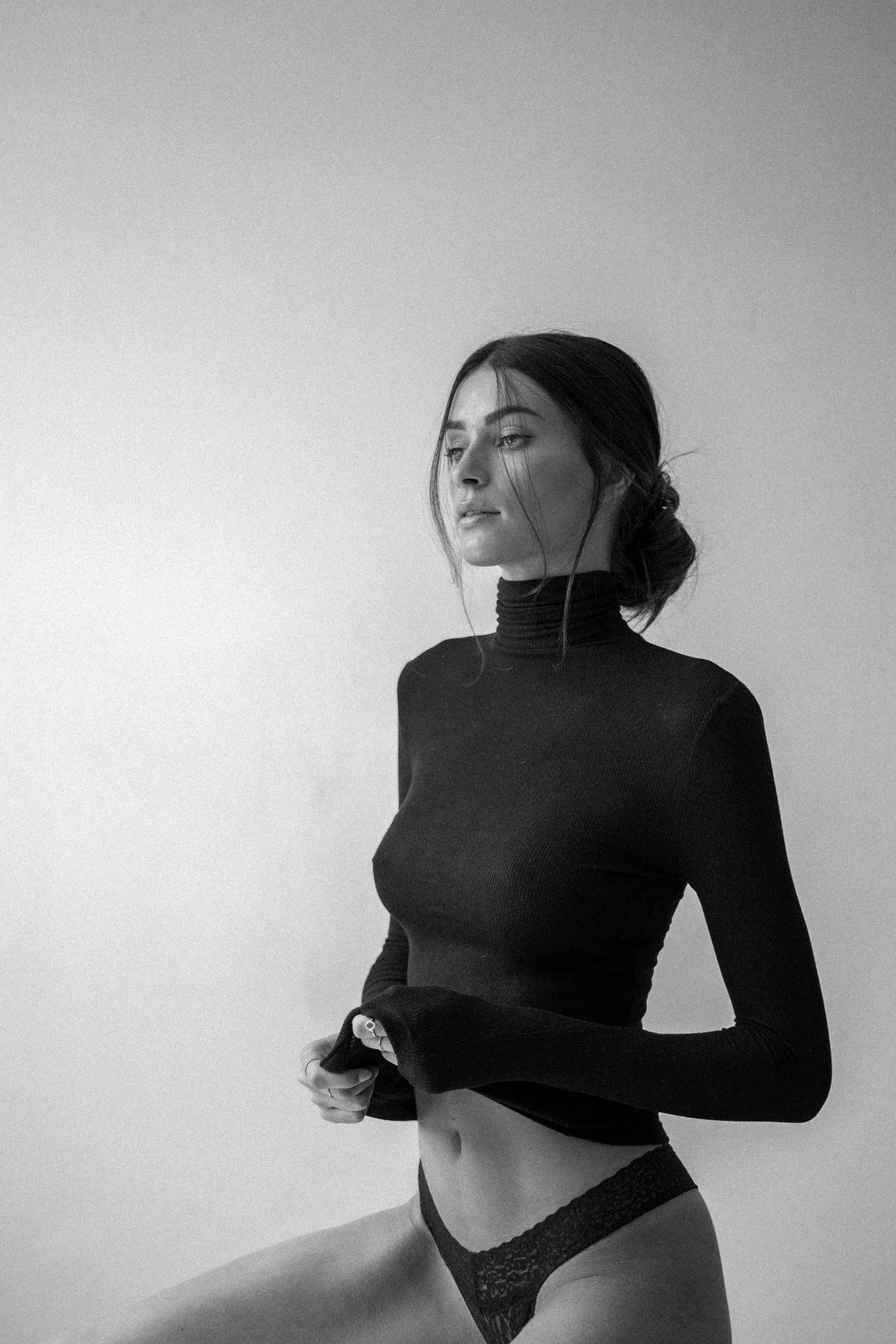 black and white studio turtleneck