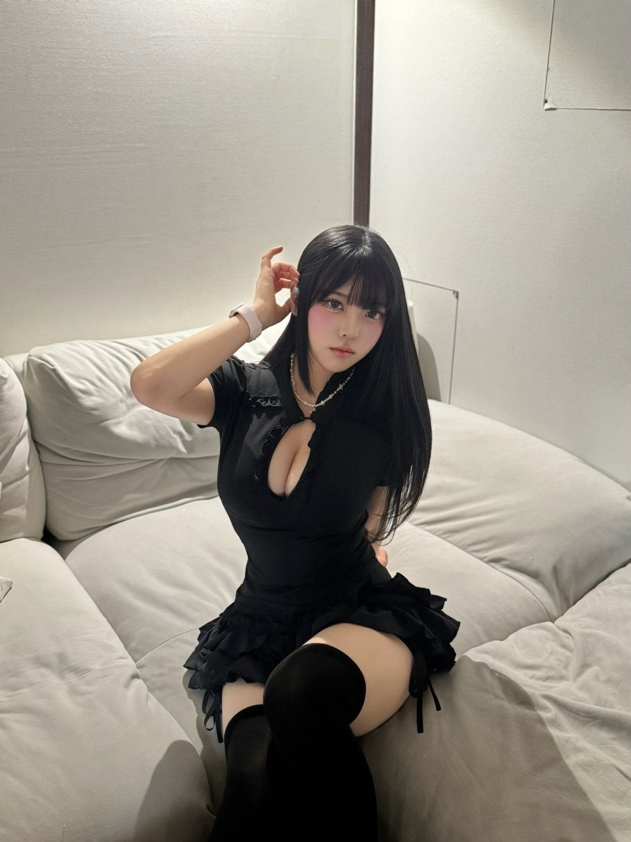 bunny girl cosplay selfie stockings silver