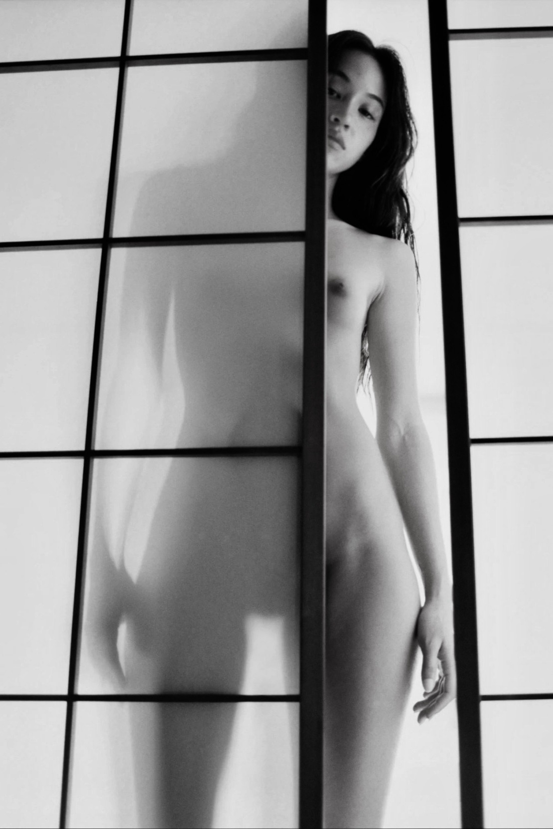 mika lovely self portrait selfie black and white