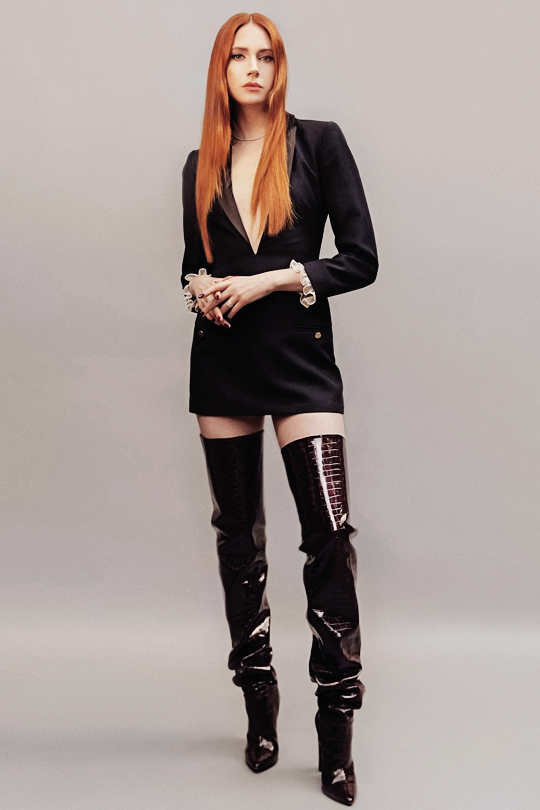 eduarda bretas 5eleven magazine may 2023 adam james richardson versace christopher kane fashion fashion photography women's fashion editorial style thigh highs boots platforms platform shoes model lyla cheng colin gold barrie griffith
