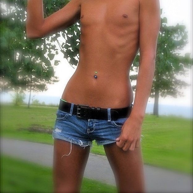 denim shorts midriff
