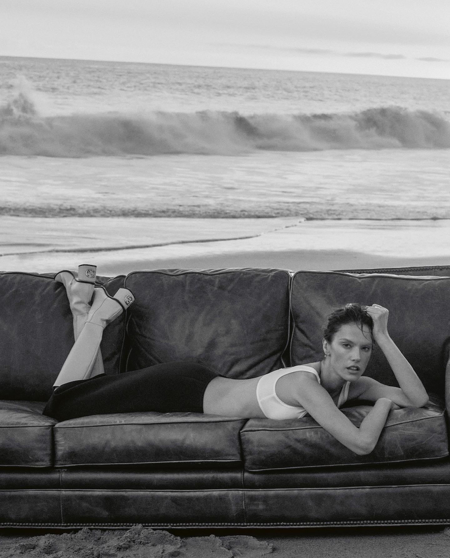 mason lane ronja furrer model estee lauder black and white legs perfume fragrance