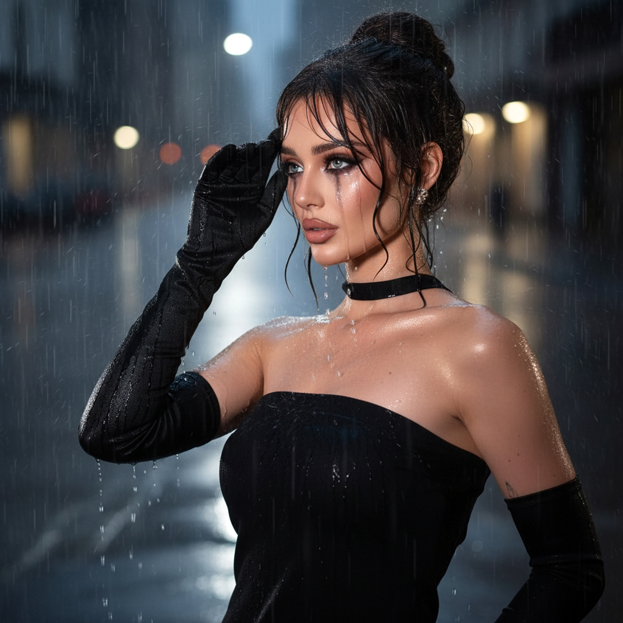 bai lu black pvc gloves pvc gloves gloves black dress sunglasses necklace umbrella asian beauty asian elegant shiny rainy day urban style